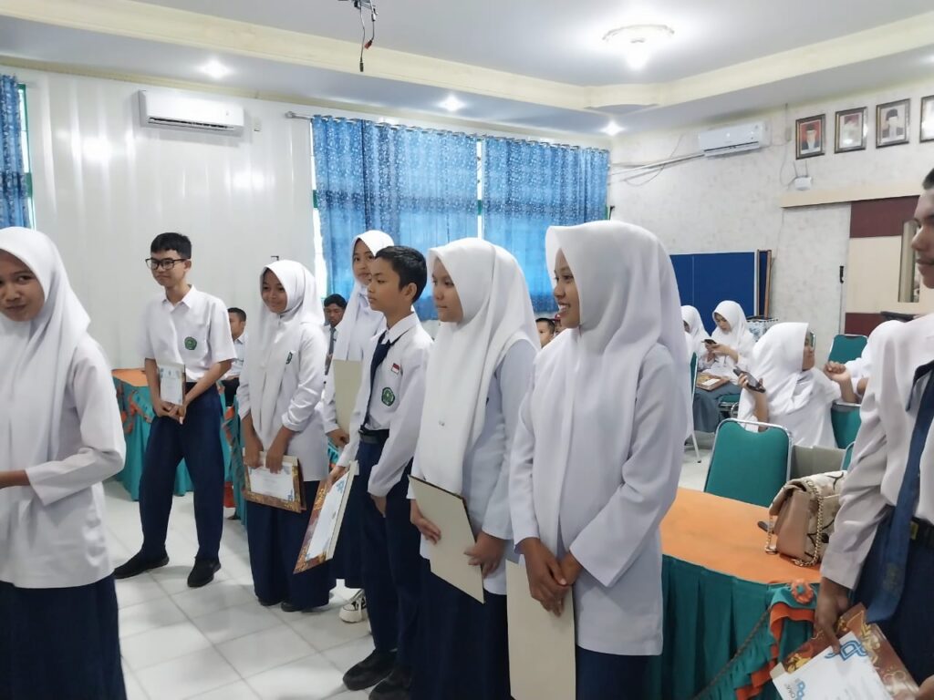 Turut hadir mendampingi Amelia dari MTsN 5 Sijunjung yaitu Kepala MTsN 5 Sijunjung Wan Eka Putra, Staf Tata Usaha Daswarman dan Oktarini guru IPA selaku guru pembimbing (Daswarman)