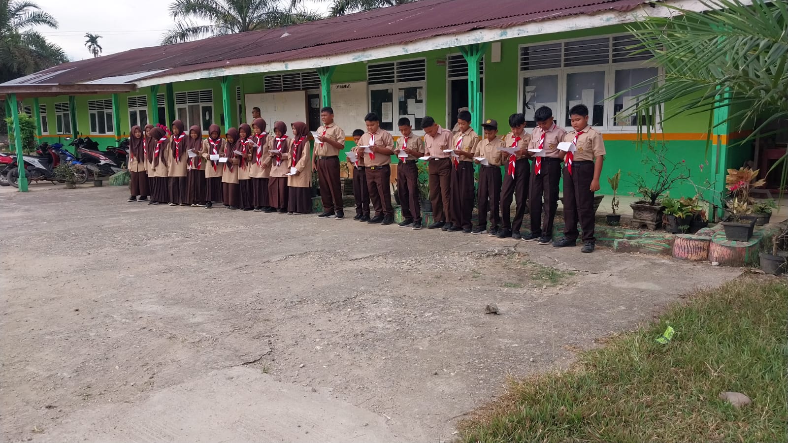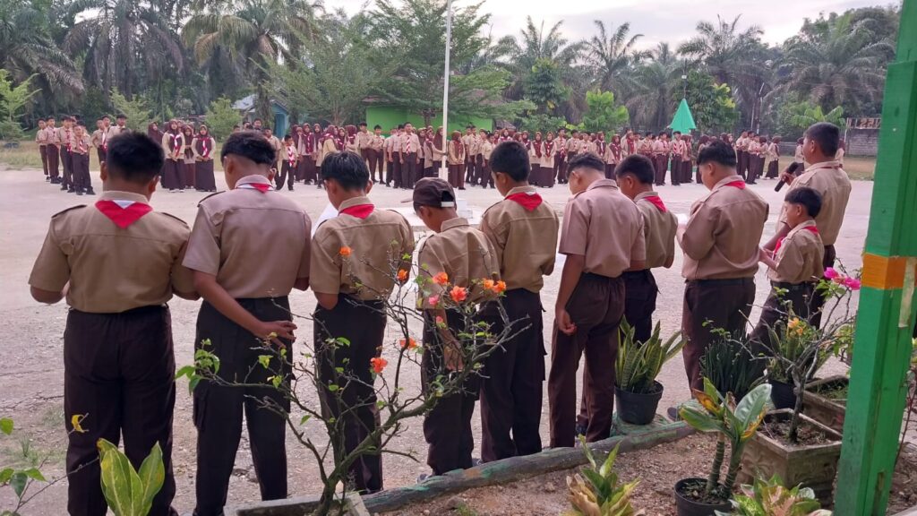 Kamang_Humas (13/11/25) — Suasana pagi di MTsN 5 Sijunjung terasa semakin syahdu dan penuh keberkahan saat siswa-siswi Kelas VII.1 memimpin kegiatan pembiasaan pagi Asmaul Husna, Kamis (13/11/2025). Kegiatan rutin yang dilaksanakan di halaman madrasah itu diawali dengan doa bersama dan diikuti lantunan 99 nama indah Allah SWT secara serentak oleh seluruh warga madrasah.