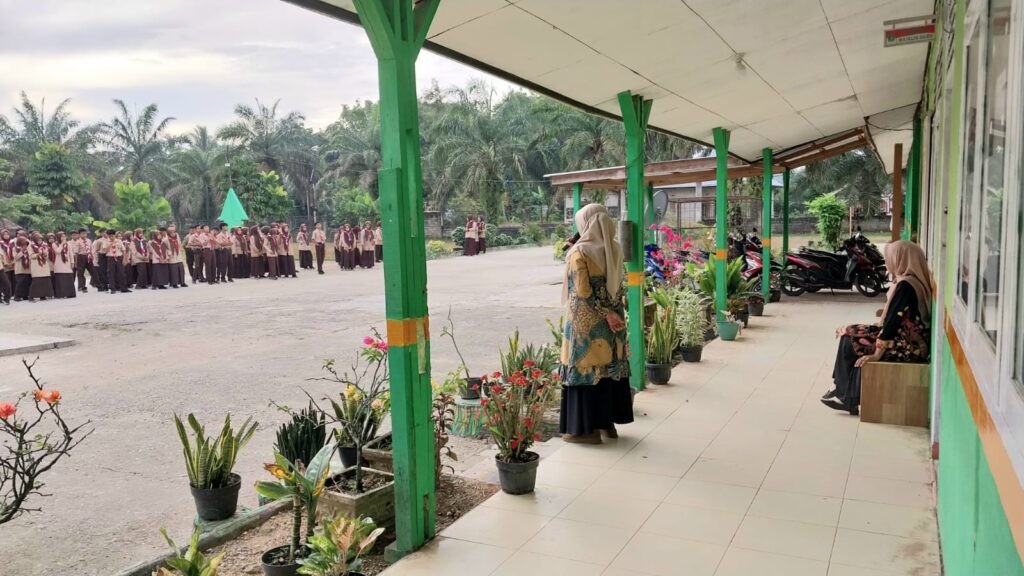 Waka.Kesiswaan MTsN 5 Sijunjung, Azizah, S.Pd.I didampingi guru piket Adelia Mahendra, S.Pd., menyampaikan apresiasi atas kekompakan dan kedisiplinan siswa dalam menjalankan pembiasaan tersebut. Menurutnya, kegiatan Asmaul Husna tidak hanya melatih hafalan, tetapi juga menumbuhkan rasa cinta kepada Allah SWT serta membiasakan siswa untuk memulai hari dengan dzikir dan doa.