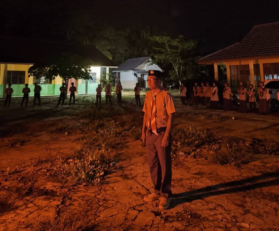 Kamang_Humas (14/09/25) – Malam perkemahan Jum’at Sabtu Minggu (Perjusami) gabungan yang digelar di lapangan SMPN 37 Sijunjung berlangsung meriah dan penuh semangat kepramukaan. Pada kegiatan puncak berupa upacara malam api unggun, Kamabigus MTsN 5 Sijunjung Wan Eka Putra yang juga Kepala Madrasah, hadir dan bertindak sebagai pembina upacara, Sabtu malam (13/09/2025)