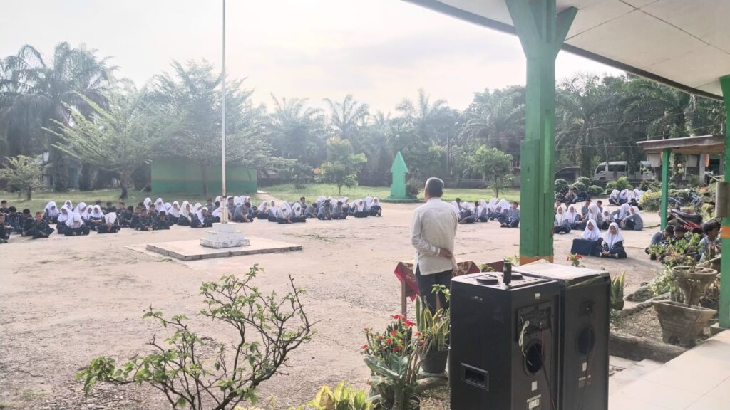 Kamang_Humas (23/01/26) – MTsN 5 Sijunjung kembali melaksanakan kegiatan rutin Muhadharah Jum’at Pagi yang bertujuan untuk melatih keberanian, keterampilan berbicara di depan umum, serta menumbuhkan karakter religius siswa. Pada pelaksanaan kali ini, Kelas IX.2 dipercaya tampil sebagai pelaksana kegiatan, yang berlangsung di halaman madrasah pada Jumat pagi (23/01/2026)