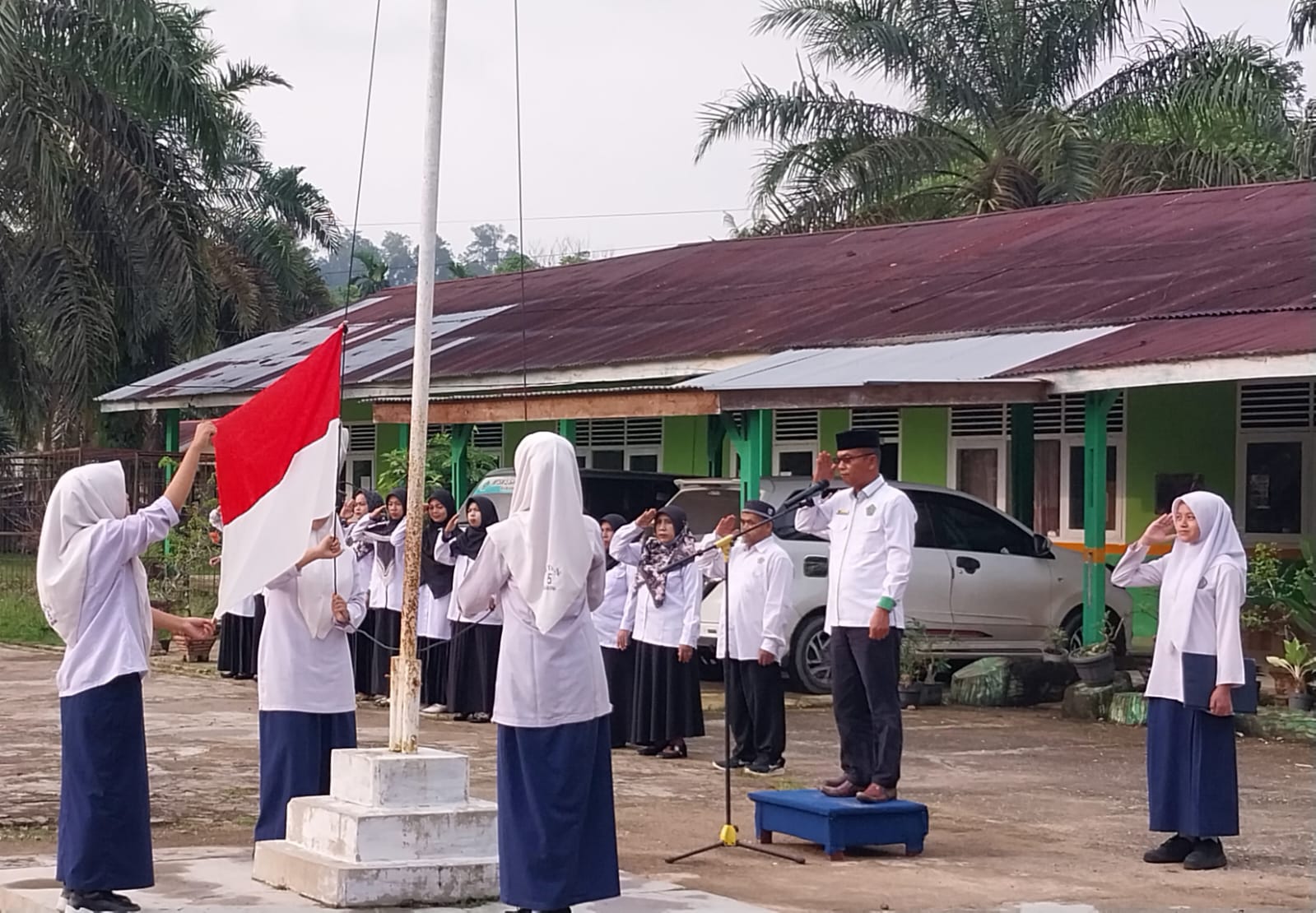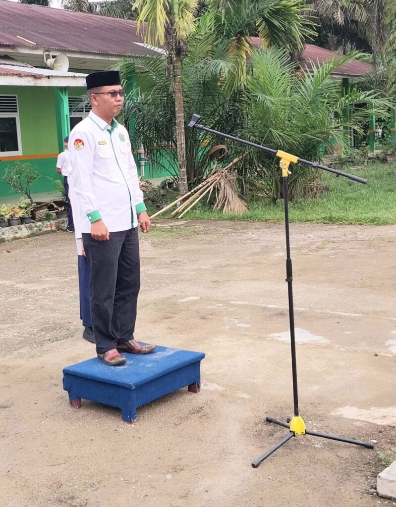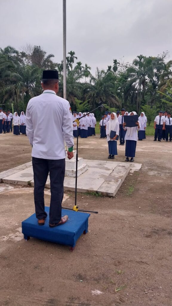 Kamang_Humas (19/01/26) — Kepala MTsN 5 Sijunjung Wan Eka Putra, S.Pd.I. M.MPd bertindak sebagai pembina upacara bendera yang dilaksanakan di halaman madrasah dengan pelaksana Kelas IX.1 pada Senin pagi, 19/01/2026). Kegiatan upacara diikuti oleh seluruh siswa, dewan guru, serta tenaga kependidikan dengan penuh khidmat dan tertib.