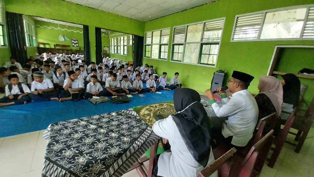 Kamang_Humas (09/03/26) – Kepala MTsN 5 Sijunjung Wan Eka Putra secara resmi membuka kegiatan Pesantren Ramadhan yang diikuti oleh seluruh siswa sebagai bagian dari program pembinaan keagamaan selama bulan suci Ramadhan, Senin (09/03/2026). Kegiatan ini dilaksanakan di lingkungan Madrasah dengan tujuan untuk meningkatkan keimanan, ketakwaan, serta membentuk karakter Islami pada diri para siswa.