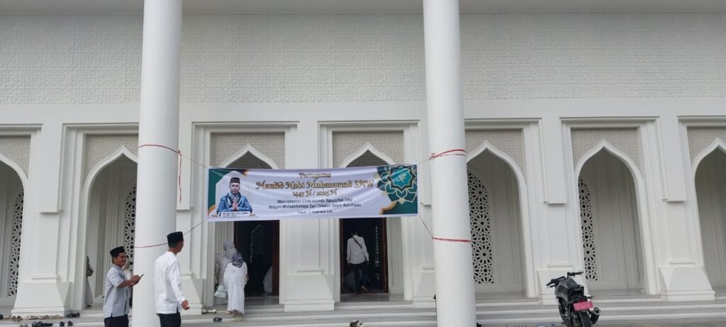 Kamang_Humas (10/09/25) – Dalam rangka memperingati Maulid Nabi Muhammad SAW 1447 H/2025 M, Kepala MTsN 5 Sijunjung Wan Eka Putra diundang khusus untuk menyampaikan tausyiah pada acara peringatan Maulid Nabi yang digelar oleh KKG PAI SD serta Persatuan Guru Republik Indonesia (PGRI) Kecamatan Timpeh, Kabupaten Dharmasraya di Masjid Jami’ Timpeh, Rabu (10/09/2025).