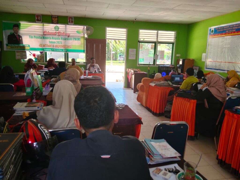 Kamang_Humas (18/12) – MTsN 5 Sijunjung menggelar Rapat Dinas Akhir Semester Ganjil Tahun Pelajaran 2025/2026 sebagai bentuk evaluasi dan refleksi terhadap seluruh rangkaian kegiatan pembelajaran dan program kerja madrasah yang telah dilaksanakan selama satu semester. Kegiatan ini diikuti oleh kepala madrasah Wan Eka Putra, Kaur. Tata Usaha Sudurdin, wakil kurikulum Zaiyar, Wakil Kesiswaan Azizah, majlis guru, serta tenaga kependidikan MTsN 5 Sijunjung, bertempat di ruang majelis guru, kamis (18/12/2025).
