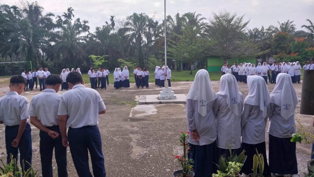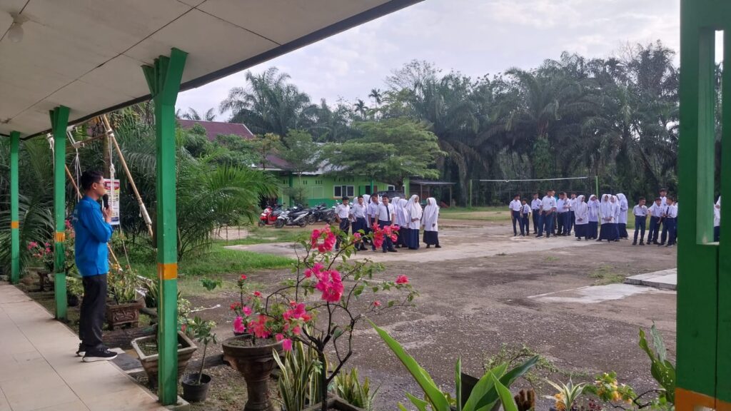 Kamang_Humas (31/03/26) – Pasca libur Hari Raya Idul Fitri 1447 H, suasana religius kembali terasa di lingkungan MTsN 5 Sijunjung. Kegiatan rutin pembacaan Asmaul Husna yang sempat terhenti selama masa libur Lebaran, kini kembali dilaksanakan sebagai bagian dari pembinaan karakter dan spiritual peserta didik, dengan pelaksana siswa kelas 8.1, Selasa (31/03/2026) bertempat di halaman Madrasah