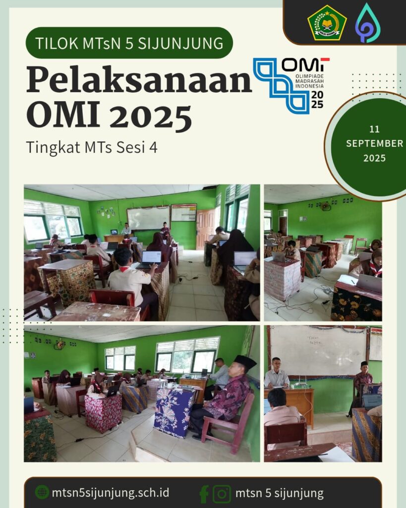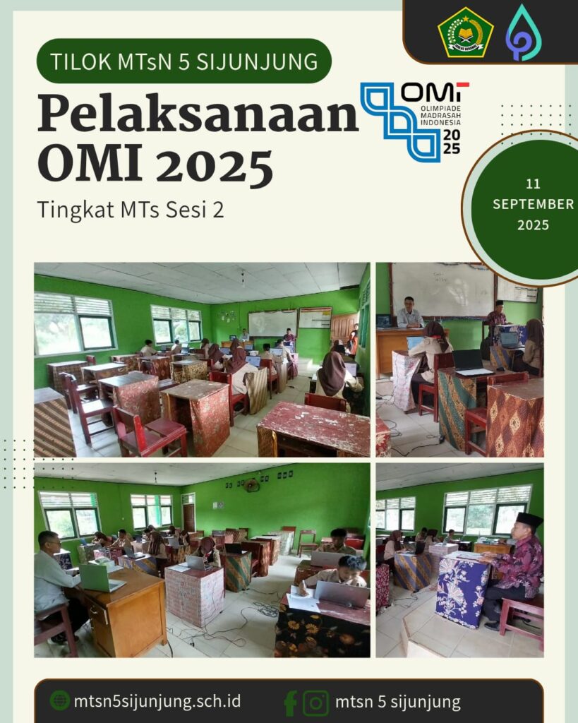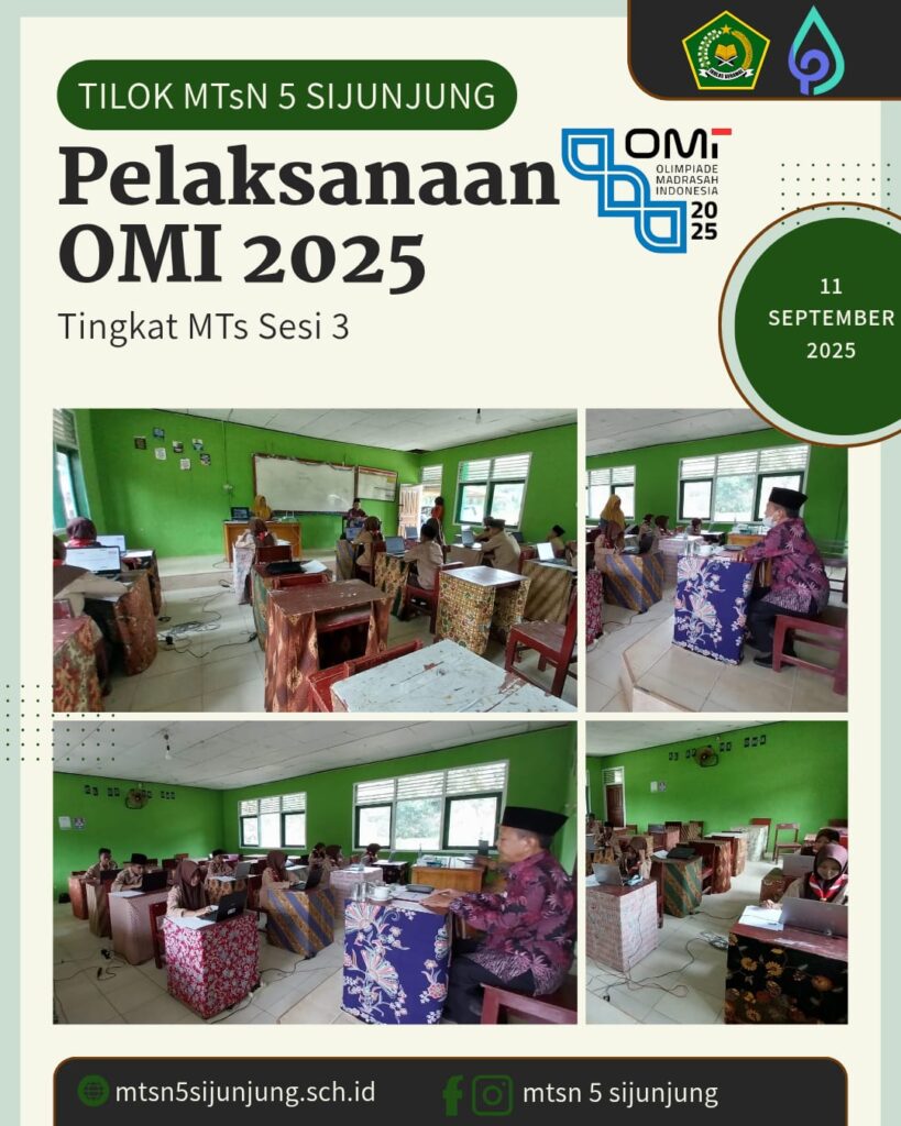 Kamang_Humas (11/09/25)– Olimpiade Madrasah Indonesia (OMI) tingkat Kabupaten Sijunjung tahun 2025 untuk jenjang Madrasah Tsanawiyah (MTs) berlangsung dengan sukses di Titik Lokasi (Tilok) MTsN 5 Sijunjung, Kamis (11/9/2025).