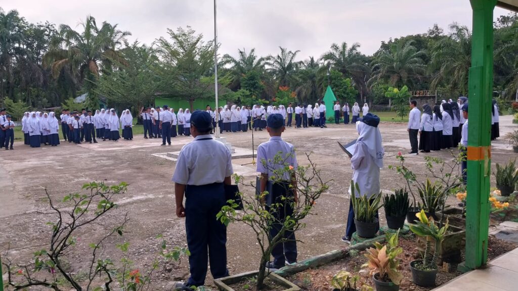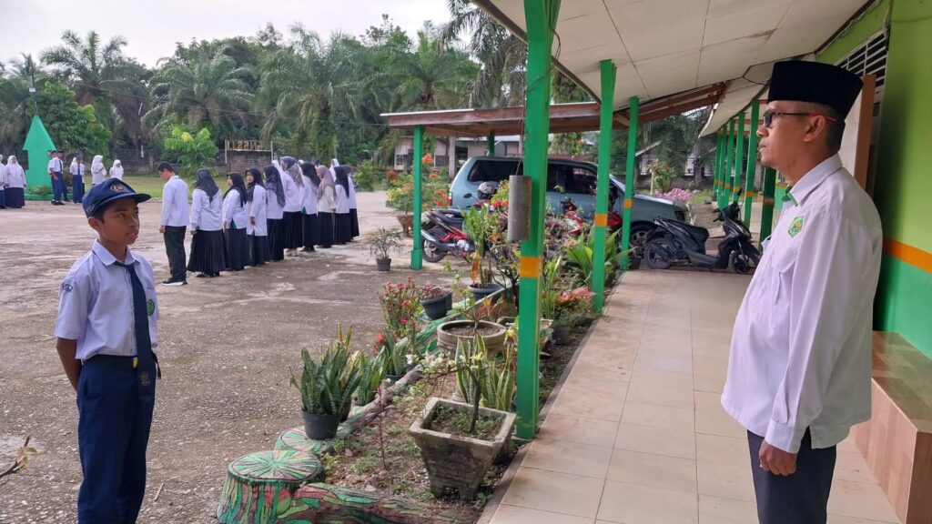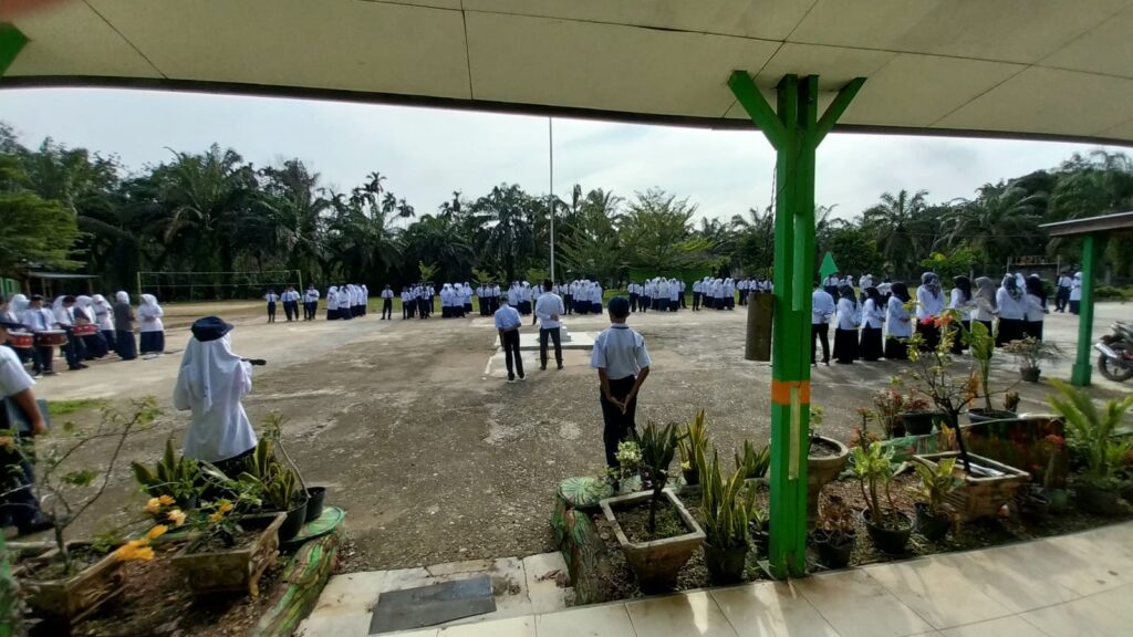Kamang_Humas (13/10/25) β MTsN 5 Sijunjung kembali melaksanakan kegiatan rutin upacara bendera yang diikuti oleh seluruh guru, tenaga kependidikan, serta siswa di halaman madrasah. Senin (13/10/2025