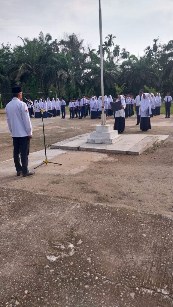 Bertindak sebagai pembina Upacara adalah Kaur. Tata Usaha Sudurdin, S.Pd.I, yang dalam amanatnya menyampaikan pentingnya menanamkan kedisiplinan, tanggung jawab, dan semangat kebangsaan di kalangan siswa. Beliau juga mengingatkan agar seluruh peserta didik selalu menjaga sikap sopan santun, menghormati guru, serta meningkatkan prestasi belajar.