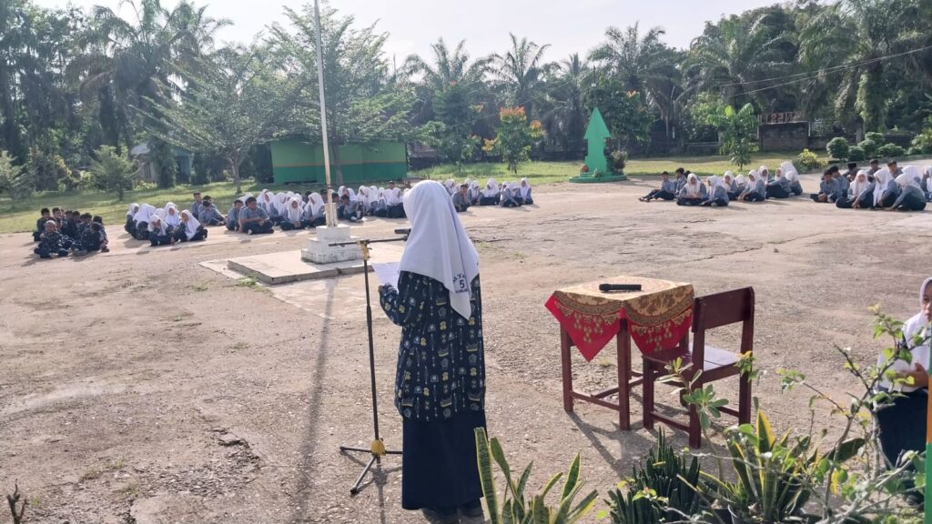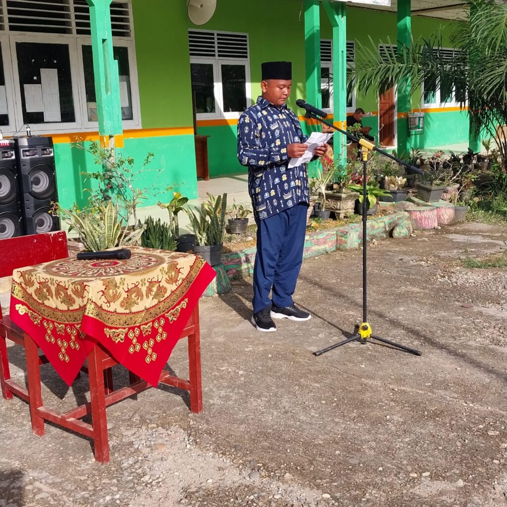 Kamang_Humas(24/10/25) — Kegiatan rutin Muhadharah Jumat pagi di MTsN 5 Sijunjung kembali berlangsung meriah dan penuh semangat. Kali ini, siswa kelas VII.1 tampil sebagai petugas pelaksana dengan menampilkan pidato dalam tiga bahasa, yaitu Bahasa Indonesia, Bahasa Inggris, dan Bahasa Arab, Jum’at (24/10/2025)