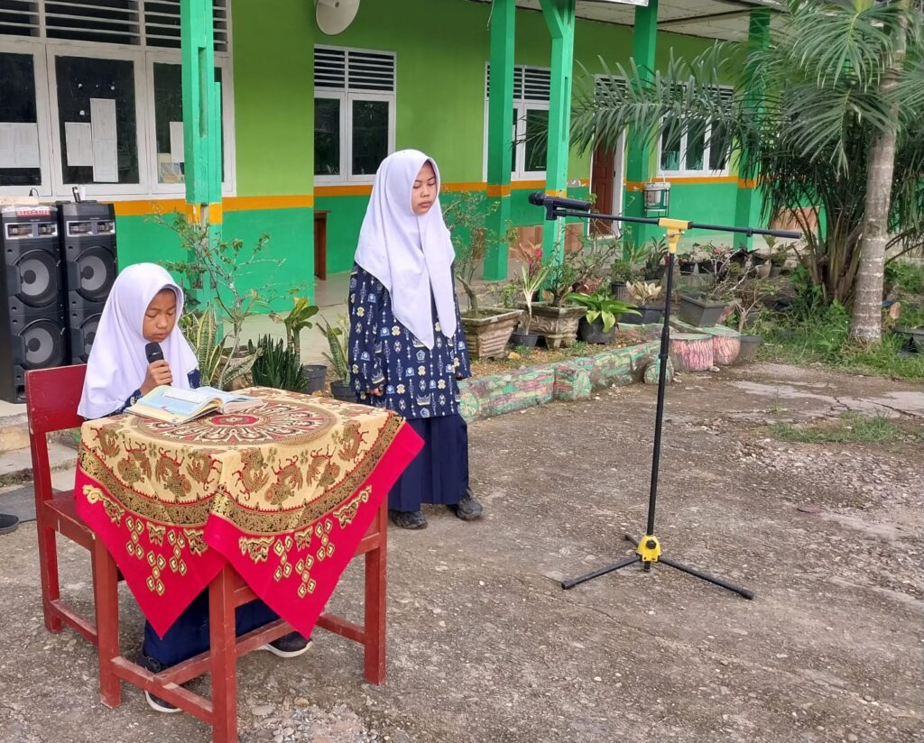 Kegiatan yang digelar di halaman madrasah tersebut diikuti oleh seluruh guru, tenaga kependidikan, dan siswa MTsN 5 Sijunjung. Acara di pandu oleh Nada Salsabila, seperti biasa kegiatan diawali dengan pembacaan ayat suci Al-Qur’an oleh Cora Wana Sri Ningsih dan saritiliawah Suci Karunia Ramli, dilanjutkan dengan Kumandang Azan oleh Firman, bacaan Sholat Jenazah Alif Ramadhan Fernando dan Khoirul Adha, Hafiz Qur’an Surat An Nabak oleh Suci Karunia Ramli. Kemudian penampilan pidato tiga bahasa.