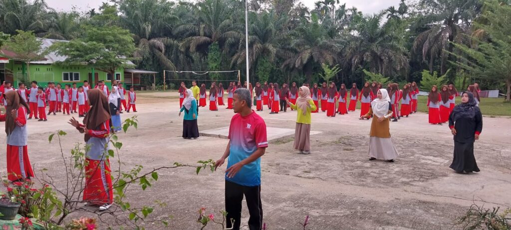 Siswa terlihat kompak mengikuti setiap instruksi, sementara para guru turut berbaur, memberikan contoh sekaligus memotivasi peserta didik untuk menjaga kesehatan jasmani.