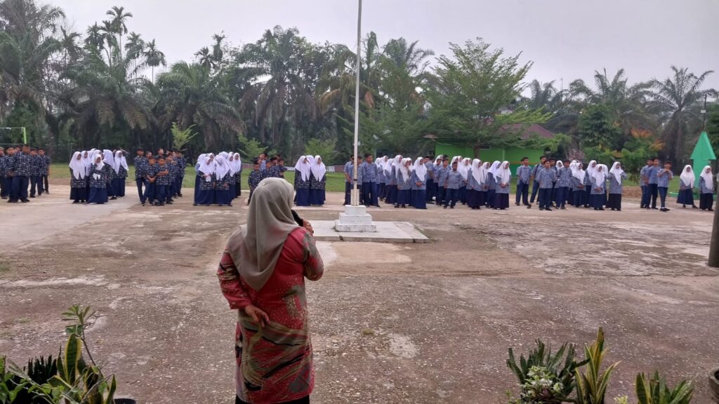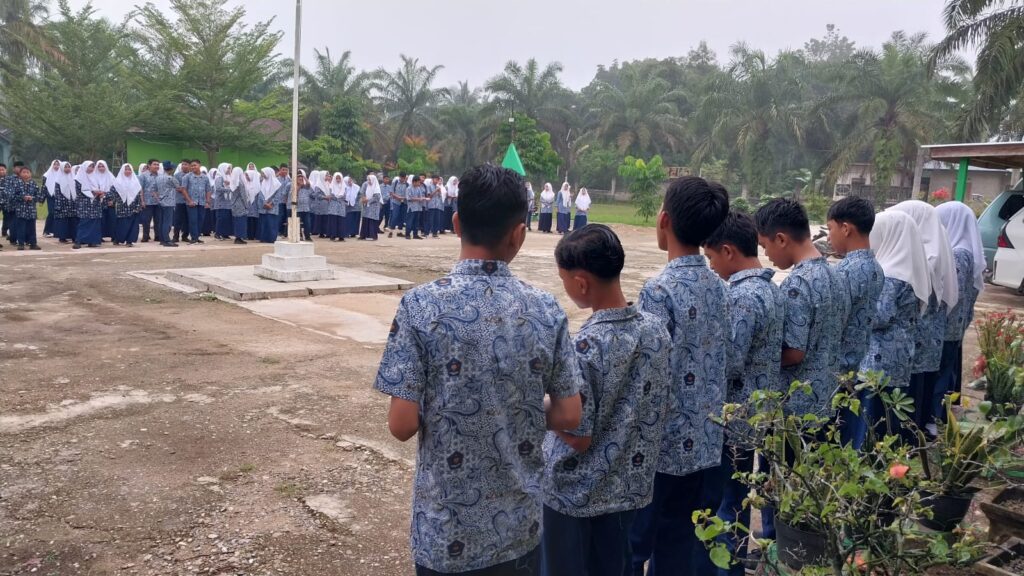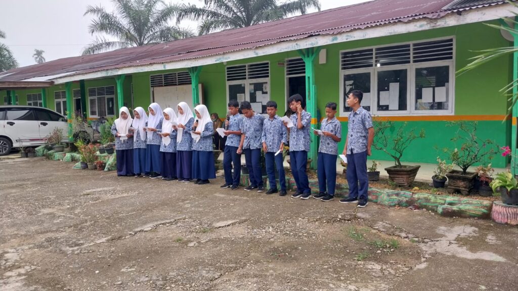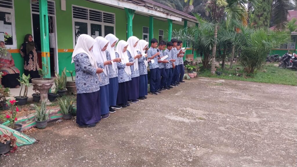Kamang_Humas (15/10/25)– Suasana pagi di MTsN 5 Sijunjung pada Rabu (15/10/2025) terasa begitu khidmat dan penuh semangat. Siswa-siswi kelas IX.1 tampil sebagai petugas dalam kegiatan pembiasaan pagi dengan memimpin pembacaan Asmaul Husna, salah satu program rutin madrasah yang bertujuan menumbuhkan kecintaan kepada Allah SWT serta membiasakan peserta didik untuk memulai hari dengan zikir dan doa.