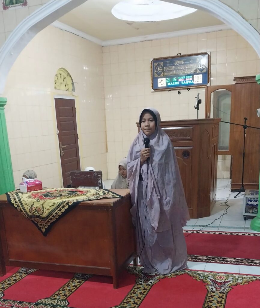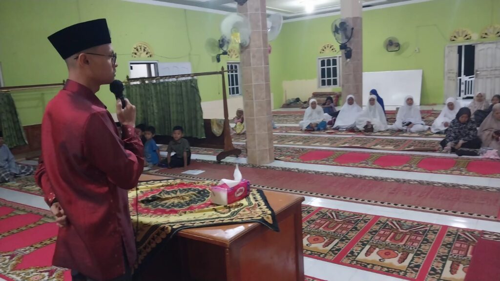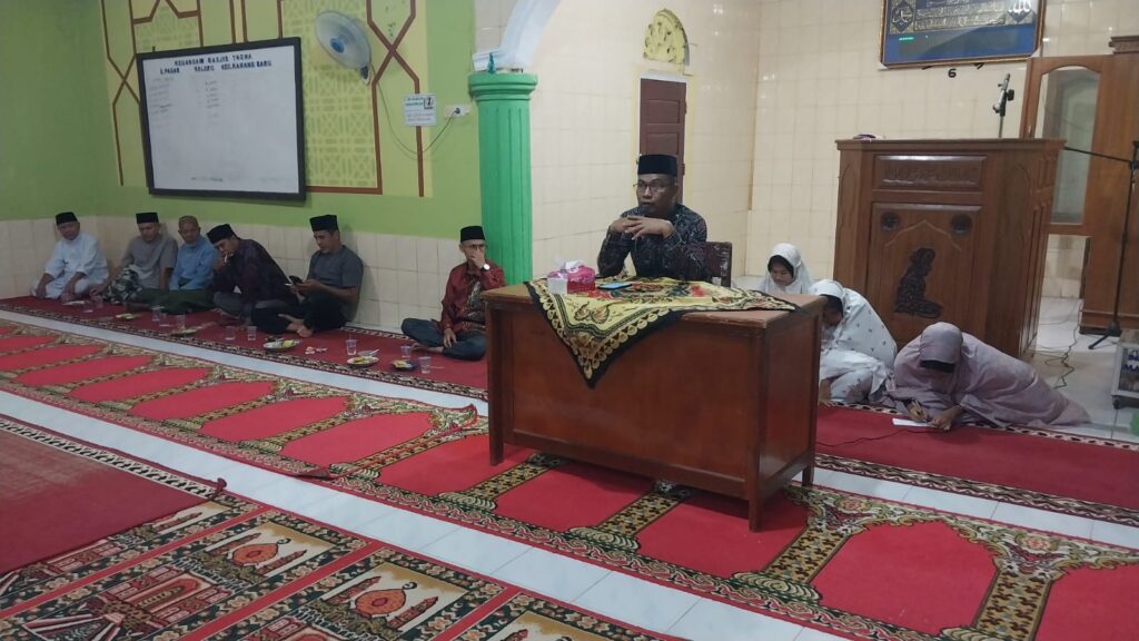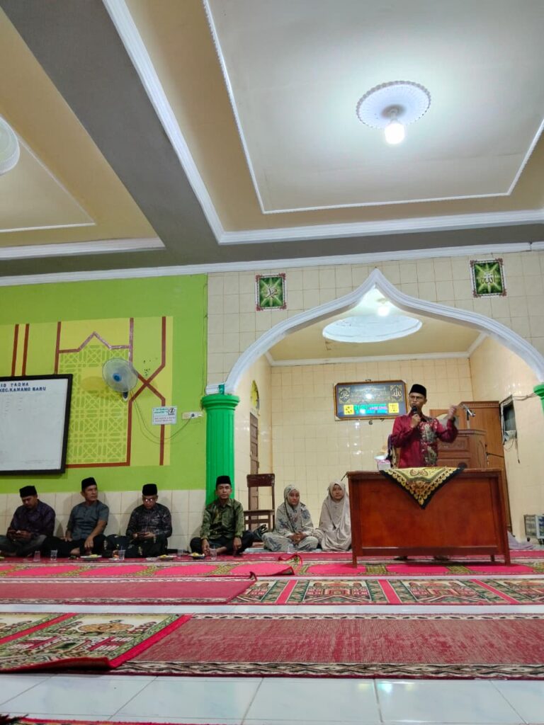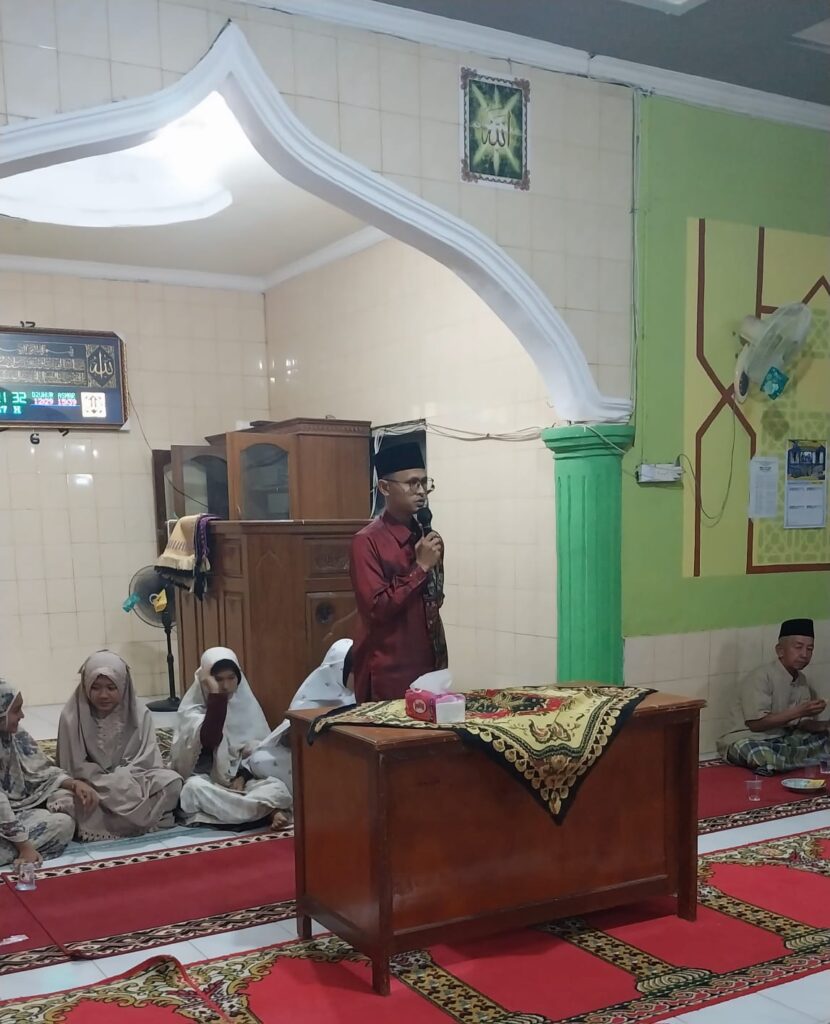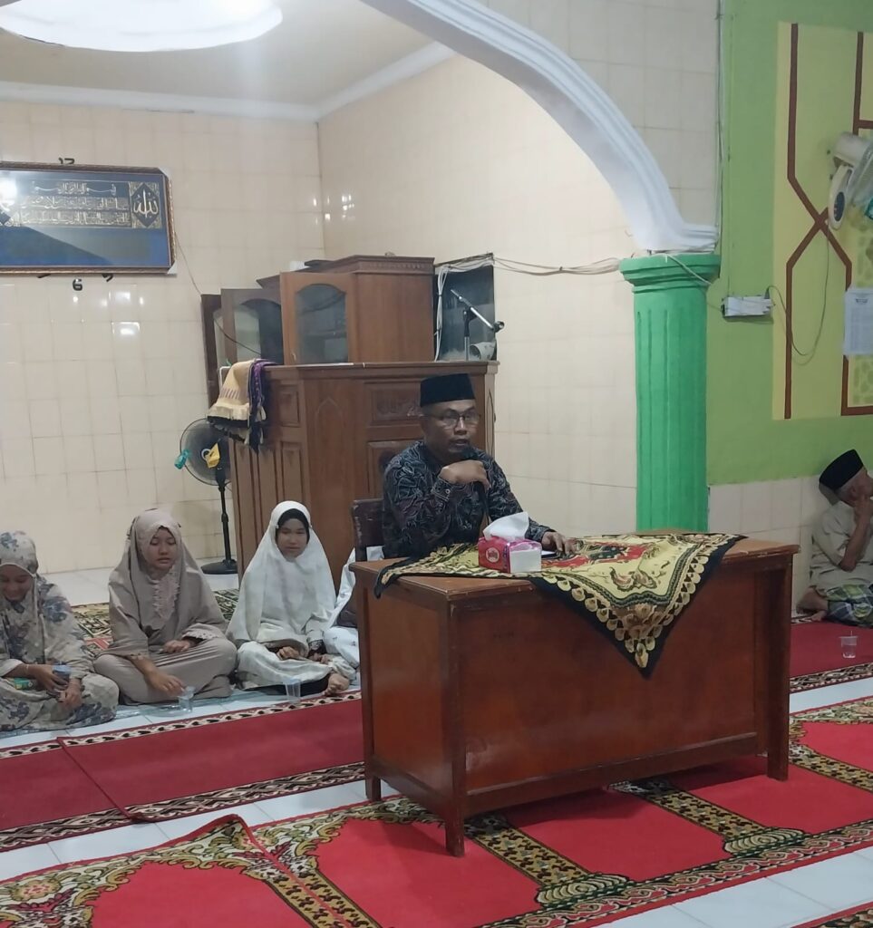 Sementara itu Kepala madrasah Wan Eka Putra menyampaikan tausyiah Ramadhan di hadapan jamaah dengan tema Kunci Meraih Syorga
