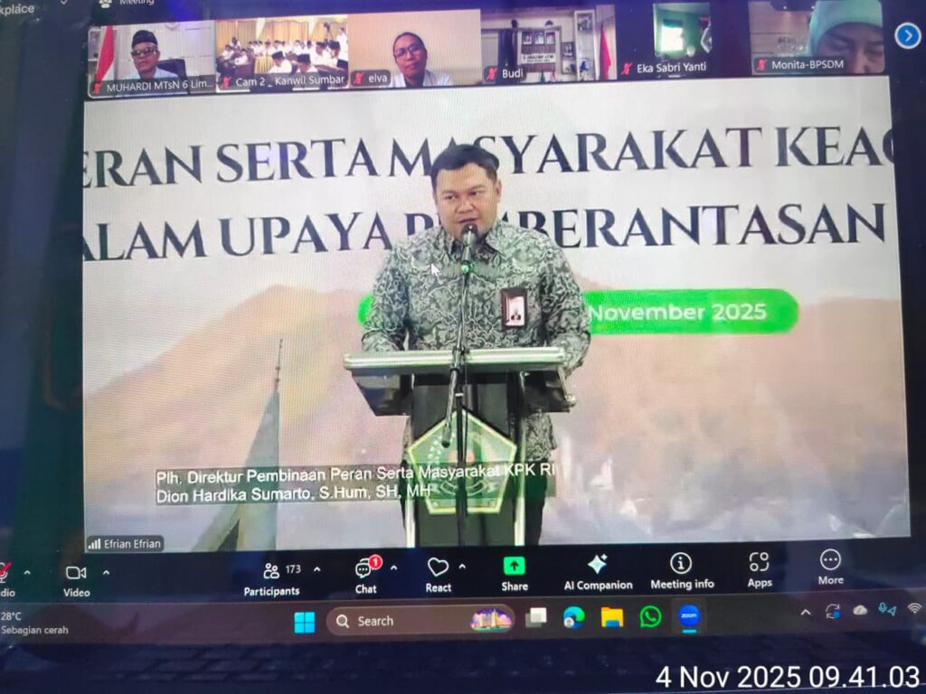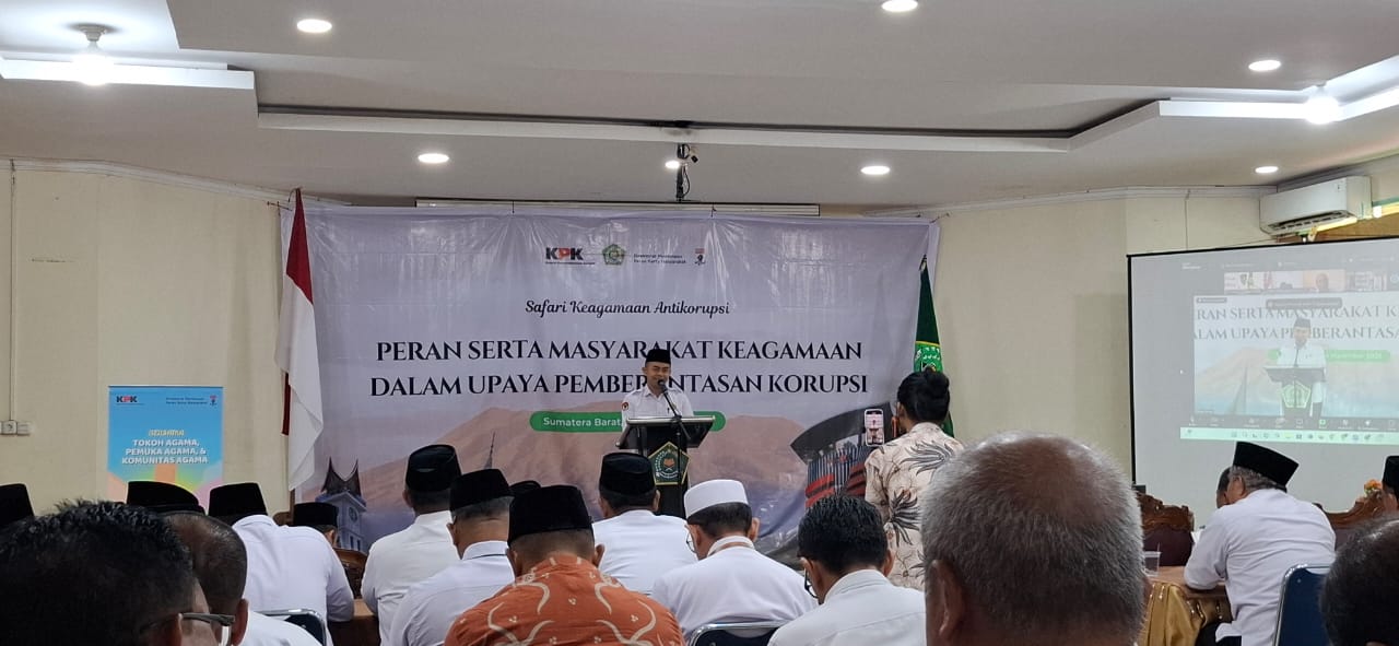 Kamang_Humas (04/11/25) — Dalam upaya meneguhkan komitmen terhadap nilai-nilai integritas dan kejujuran, Kepala MTsN 5 Sijunjung Wan Eka Putra bersama Kepala Kantor Kemenag Kab Sijunjung H.Okto Verisman, Kasi.Bimas Islam Yoni Hendra dan Penghulu/Kepala KUA Kec.Sijunjung H.Jondri turut menghadiri kegiatan Safari Keagamaan Anti Korupsi yang diselenggarakan oleh Kantor Wilayah Kementerian Agama Provinsi Sumatera Barat, pada Selasa (04/11/2025) bertempat di Aula Amal Bhakti II Kanwil Kemenag Provinsi Sumbar di Padang.