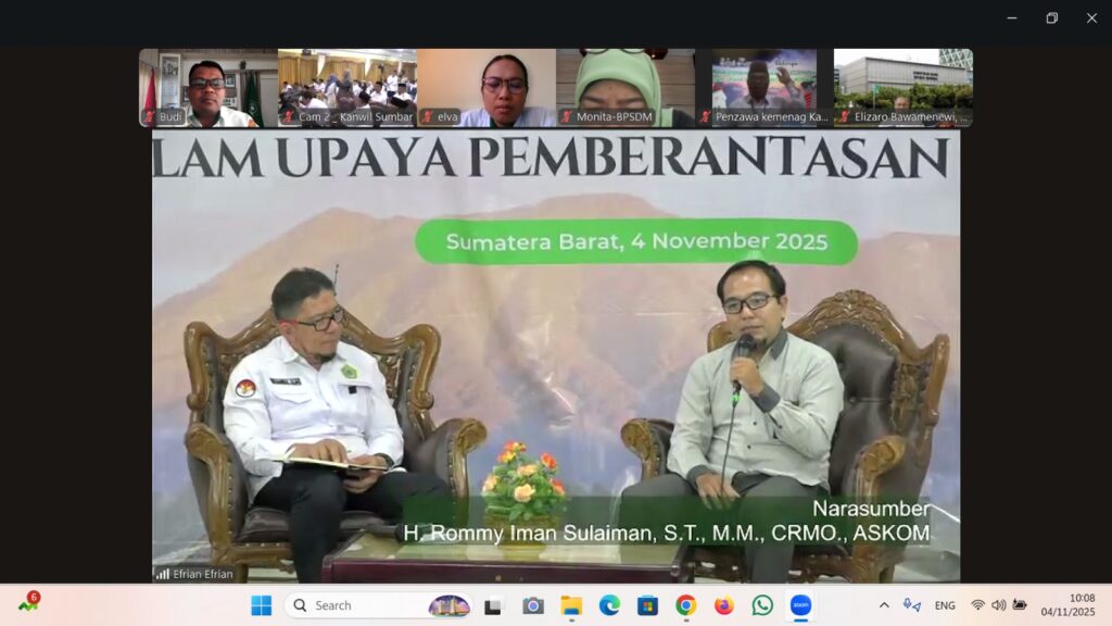 kegiatan ini, mengangkat tema ” Peran serta Masyarakat Keagamaan dalam Upaya Pemberantasan Korupsi” dengan Narasumbar Romny Iman Sulaiman, ST.M.M ( Analis Ahli Pemberantasan Tindak Pidana Korupsi KPK RI) dengan penghantar acara Plh. Direktur Pembinaan Peran Serta Masyarakat KPK RI bapak Dion Hardika Sumarto, S.Hum. SH.MH