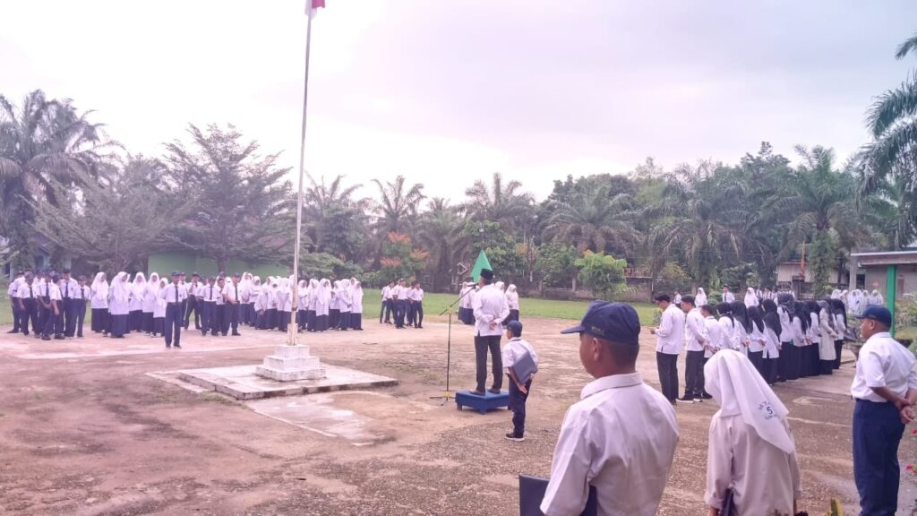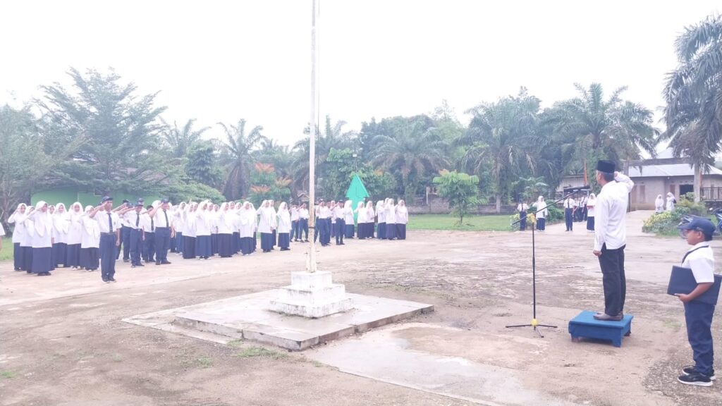Kamang_Humas (05/01/26) – MTsN 5 Sijunjung menggelar upacara bendera perdana dalam rangka mengawali kegiatan pembelajaran semester genap Tahun Pelajaran 2025/2026. Upacara dilaksanakan pada Senin pagi (05/01/2026) di halaman madrasah dan diikuti oleh seluruh peserta didik, guru, serta tenaga kependidikan dengan penuh khidmat dan tertib